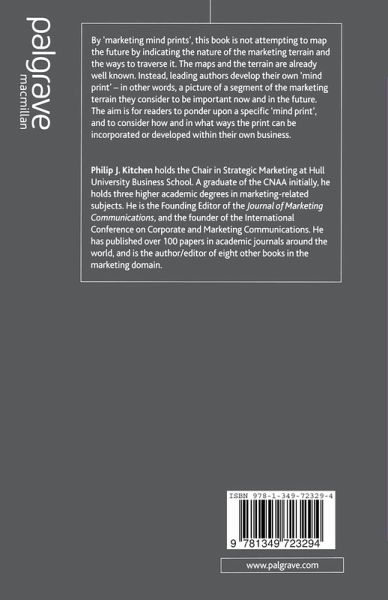 By 'marketing mind prints', this book is not attempting to map the future by indicating the nature of the marketing terrain and the ways to traverse it. The maps and the terrain are already well known. Instead, leading authors develop their own 'mind print' - in other words, a picture of a segment of the marketing terrain they consider to be important now and in the future. The aim is for readers to ponder upon a specific 'mind print', and to consider how and in what ways the print can be incorporated or developed within their own business.