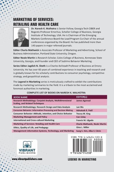 ¿¿¿¿¿ Master Service Marketing in Retail & Healthcare! Marketing of Services: Retailing and Health Care by Naresh Malhotra delves into the unique challenges and strategies involved in marketing intangible services-specifically in retail and healthcare sectors. As part of the Legend in Marketing series, this book presents groundbreaking research on consumer expectations, service quality, branding, and customer satisfaction in service-driven industries. This volume explores service differentiation, patient-centered healthcare marketing, customer experience in retail, and innovations in service delivery. It also highlights the impact of digital transformation, AI, and data-driven personalization in modern service marketing. With real-world examples and expert analysis, this book is essential for retail executives, healthcare marketers, business strategists, and researchers aiming to enhance service delivery, improve brand perception, and foster customer loyalty. ¿¿¿¿ Stay ahead in service marketing-get your copy today!