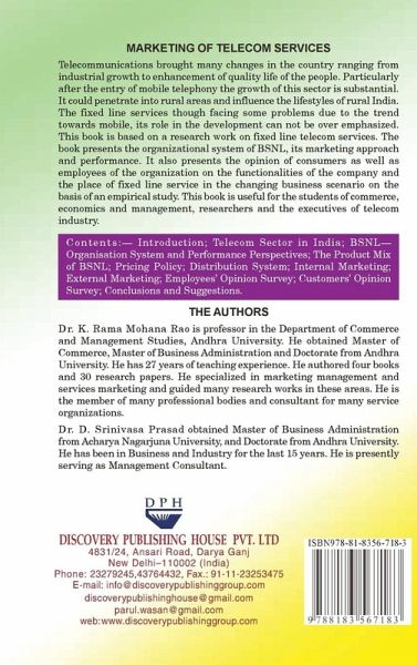 Telecommunications brought many changes in the country ranging from industrial growth to enhancement of quality life of the people. Particularly after the entry of mobile telephony the growth of this sector is substantial. It could penetrate into rural areas and influence the lifestyles of rural India. The fixed line services though facing some problems due to the trend towards mobile, its role in the development can not be over emphasized. This book is based on a research work on fixed line telecom services. The book presents the organizational system of BSNL, its marketing approach and performance. It also presents the opinion of consumers as well as employees of the organization on the functionalities of the company and the place of fixed line service in the changing business scenario on the basis of an empirical study. This book is useful for the students of commerce, economics and management, researchers and the executives of telecom industry.