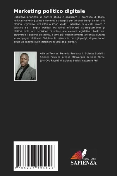 L'obiettivo principale di questo studio è analizzare il processo di Digital Political Marketing come strumento strategico per persuadere gli elettori alle elezioni legislative del 2016 a Capo Verde. L'obiettivo di questo lavoro è valutare se il Digital Political Marketing influenzerà strategicamente gli elettori nella loro decisione di votare alle elezioni legislative. Analizzare, attraverso i discorsi dei partiti, i temi più frequentemente affrontati durante le campagne elettorali. Valutare la misura in cui i jingle/gli slogan hanno avuto un impatto sulle intenzioni di voto degli elettori.