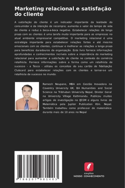 A satisfação do cliente é um indicador importante da lealdade do consumidor e da intenção de recompra; aumenta o valor do tempo de vida do cliente e reduz o boca-a-boca negativo. Estabelecer relações de longo prazo com os clientes é uma tarefa muito importante para as empresas no atual ambiente empresarial competitivo. O marketing relacional é uma estratégia importante para estabelecer relações fortes e até mesmo emocionais com os clientes, continuar e melhorar as relações a longo prazo para benefícios duradouros da organização. Este livro fornece informações aprofundadas e conhecimentos incríveis sobre a importância do marketing relacional para aumentar a satisfação do cliente no contexto do comércio retalhista. Fornece informações sobre a forma como um retalhista de sucesso - a Tesco - utilizou os conceitos do seu cartão de fidelização Clubcard para estabelecer relações com os clientes e tornar-se um retalhista de sucesso no mundo.