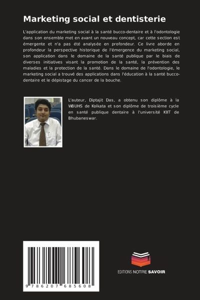 L'application du marketing social à la santé bucco-dentaire et à l'odontologie dans son ensemble met en avant un nouveau concept, car cette section est émergente et n'a pas été analysée en profondeur. Ce livre aborde en profondeur la perspective historique de l'émergence du marketing social, son application dans le domaine de la santé publique par le biais de diverses initiatives visant la promotion de la santé, la prévention des maladies et la protection de la santé. Dans le domaine de l'odontologie, le marketing social a trouvé des applications dans l'éducation à la santé bucco-dentaire et le dépistage du cancer de la bouche.