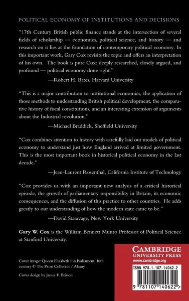 How did England, once a minor regional power, become a global hegemon between 1689 and 1815? Why, over the same period, did she become the world's first industrial nation? Gary W. Cox addresses these questions in Marketing Sovereign Promises. The book examines two central issues: the origins of the great taxing power of the modern state and how that power is made compatible with economic growth. Part I considers England's rise after the revolution of 1689, highlighting the establishment of annual budgets with shutdown reversions. This core reform effected a great increase in per capita tax extraction. Part II investigates the regional and global spread of British budgeting ideas. Cox argues that states grew only if they addressed a central credibility problem afflicting the Ancien Régime - that rulers were legally entitled to spend public revenue however they deemed fit.