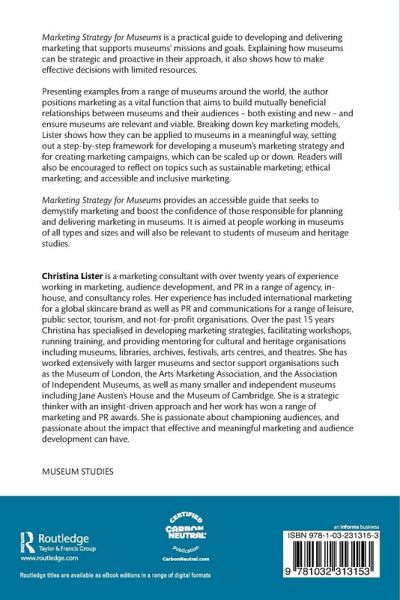 Marketing Strategy for Museums provides an accessible guide that seeks to demystify marketing and boost the confidence of those responsible for planning and delivering marketing in museums. It is aimed at people working in museums of all types and sizes and will also be relevant to students of museum and heritage studies.