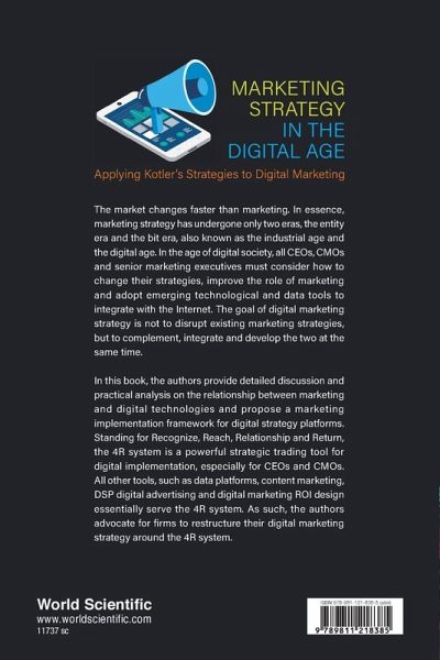 The market changes faster than marketing. In essence, marketing strategy has undergone only two eras, the entity era and the bit era, also known as the industrial age and the digital age. In the age of digital society, all CEOs, CMOs and senior marketing executives must consider how to change their strategies, improve the role of marketing and adopt emerging technological and data tools to integrate with the Internet. The goal of digital marketing strategy is not to disrupt existing marketing strategies, but to complement, integrate and develop the two at the same time. In this book, the authors provide detailed discussion and practical analysis on the relationship between marketing and digital technologies and propose a marketing implementation framework for digital strategy platforms. Standing for Recognize, Reach, Relationship and Return, the 4R system is a powerful strategic trading tool for digital implementation, especially for CEOs and CMOs. All other tools, such as data platforms, content marketing, DSP digital advertising and digital marketing ROI design essentially serve the 4R system. As such, the authors advocate for firms to restructure their digital marketing strategy around the 4R system.
