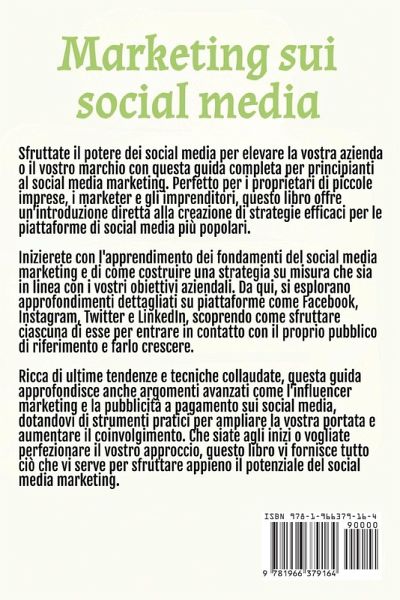 Marketing sui social media Siete pronti a portare la vostra azienda o il vostro marchio a un livello superiore utilizzando il potere dei social media? Se siete proprietari di una piccola azienda, marketer o imprenditori, questo libro è la vostra guida passo passo per padroneggiare il mondo in continua evoluzione del social media marketing. All'interno, scoprirete come creare una strategia vincente adatta ai vostri obiettivi, come sfruttare le principali piattaforme come Facebook, Instagram, Twitter e LinkedIn e come raggiungere il pubblico giusto al momento giusto. Questa guida per principianti analizza i punti di forza di ciascuna piattaforma, mostrandovi come massimizzare la vostra presenza, aumentare il coinvolgimento e costruire un seguito fedele. Ma non si ferma qui. Imparerete anche a sfruttare tattiche all'avanguardia, come le partnership con gli influencer e la pubblicità mirata, per amplificare il vostro messaggio e distinguervi nell'affollato spazio digitale. Con consigli facili da seguire, suggerimenti praticabili e approfondimenti aggiornati, questo libro vi fornisce le conoscenze e la sicurezza necessarie per costruire il vostro marchio e ottenere risultati concreti. Siete pronti a trasformare il vostro gioco sui social media? Prendete la vostra copia oggi stesso e iniziate a liberare tutta la potenza del social media marketing!