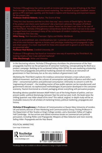 In this fascinating volume, Nicholas O'Shaughnessy elucidates the phenomenon of the Nazi propaganda machine via the perspective of consumer marketing, conceptualising the Reich as a product campaign. Building on his acclaimed Selling Hitler (2016), he uses marketing scholarship to show how propaganda and political marketing existed not merely as an instrument of government in Nazi Germany, but as the very medium of government itself.