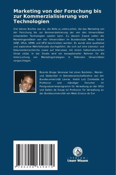 Ziel dieses Buches war es, die Rolle zu untersuchen, die das Marketing von der Forschung bis zur Kommerzialisierung der von den Universitäten entwickelten Technologien spielen kann. Zu diesem Zweck sollen die Marketingpraktiken von vier Universitäten im Bundesstaat Minas Gerais (UFJF, UFLA, UFMG und UFV) beschrieben werden. Es wurde eine qualitative und explorative Mehrfallstudie durchgeführt, die sich auf eine Literatur- und Dokumentenrecherche sowie auf Interviews mit einem halbstrukturierten Skript stützt. In der Studie wird ein konzeptioneller Rahmen für die Untersuchung von Marketingstrategien in föderalen Universitäten vorgeschlagen.