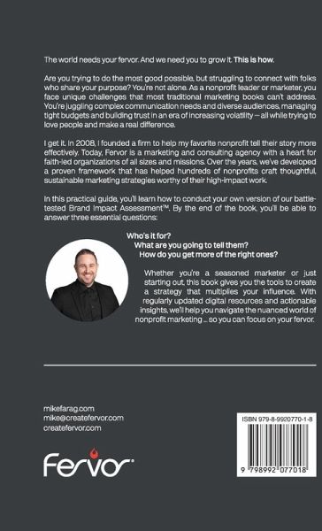 Marketing with Fervor isn't just another marketing book-it's a battle-tested playbook for nonprofits ready to make an unforgettable impact. Written by Mike Farag, founder of Fervor, this book is a heart-driven guide born out of real experiences, like helping a nonprofit in Haiti supercharge its mission through marketing. That moment sparked the creation of Fervor and the approach detailed in these pages. At the heart of the book is Fervor's game-changing Brand Impact Assessment(TM). This isn't about casting a wide net-it's about zeroing in on your Ideal Advocates(TM), the people who are already fired up about your mission and ready to help you move mountains. Mike takes you step-by-step through understanding these advocates, crafting messages that truly connect, and building a strategy that turns those connections into lasting momentum. But Mike doesn't stop there. He knows nonprofits face unique challenges-limited budgets, complex messaging, and audiences that range from donors to volunteers and everyone in between. Through real-world examples and no-fluff advice, he shows how Fervor's approach has helped organizations clarify their voice, amplify their reach, and rally the right people to their cause. The takeaway? This book is your roadmap to building relationships that energize your mission, not drain it. By the last page, you'll have the tools, strategies, and inspiration to turn supporters into advocates and advocates into a movement. Marketing with Fervor is about more than marketing-it's about helping your organization make the most good possible.