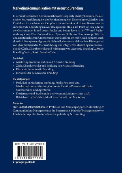 In der multisensuellen Kommunikation der Corporate Identity kommt der akustischen Markenführung bei der Positionierung von Unternehmen, Marken und Produkten im wachsenden Kampf um die Aufmerksamkeit von Konsumenten zunehmende Bedeutung zu. Mit Background-Musik am Point-of-Sale oder in der Gastronomie, Sound Logos, Jingles und Sound Icons in der TV- und Radiowerbung sowie Chat-Bots und Smart Speaker Skills im eCommerce profilieren und emotionalisieren Unternehmen ihre Marke nicht nur visuell, sondern auch akustisch. Kompakt und grundsätzlich stellt dieses essential vor dem Hintergrund von identitätsbasierter Markenführung und integrierter Marketingkommunikation die Ziele, Charakteristika und Wirkungen von "Acoustic Branding", "Audio Branding" oder "Sonic Branding" dar.