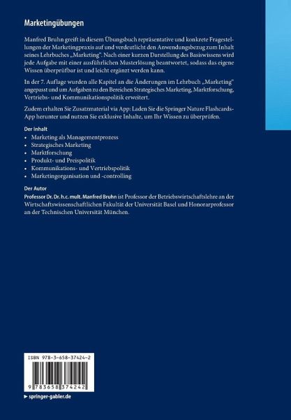 Manfred Bruhn greift in diesem Übungsbuch repräsentative und konkrete Fragestellungen der Marketingpraxis auf und verdeutlicht den Anwendungsbezug zum Inhalt seines Lehrbuches "Marketing". Nach einer kurzen Darstellung des Basiswissens wird jede Aufgabe mit einer ausführlichen Musterlösung beantwortet, sodass das eigene Wissen überprüfbar ist und leicht ergänzt werden kann.
