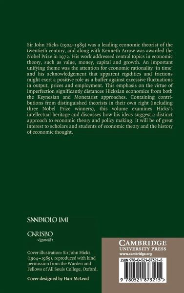 Sir John Hicks (1904-89) was a leading economic theorist of the twentieth century, and along with Kenneth Arrow was awarded the Nobel Prize in 1972. His work addressed central topics in economic theory, such as value, money, capital and growth. An important unifying theme was the attention for economic rationality 'in time' and his acknowledgement that apparent rigidities and frictions might exert a positive role as a buffer against excessive fluctuations in output, prices and employment. This emphasis on the virtue of imperfection significantly distances Hicksian economics from both the Keynesian and Monetarist approaches. Containing contributions from distinguished theorists in their own right (including three Nobel Prize winners), this volume examines Hicks's intellectual heritage and discusses how his ideas suggest a distinct approach to economic theory and policy making. It will be of great interest to scholars and students of economic theory and the history of economic thought.