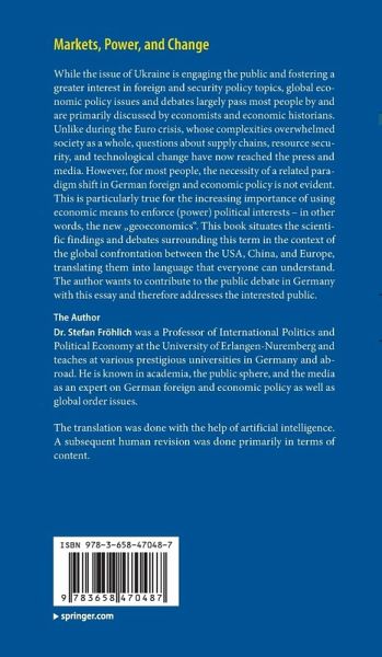 While the issue of Ukraine is engaging the public and fostering a greater interest in foreign and security policy topics, global economic policy issues and debates largely pass most people by and are primarily discussed by economists and economic historians. Unlike during the Euro crisis, whose complexities overwhelmed society as a whole, questions about supply chains, resource security, and technological change have now reached the press and media. However, for most people, the necessity of a related paradigm shift in German foreign and economic policy is not evident. This is particularly true for the increasing importance of using economic means to enforce (power) political interests - in other words, the new "geoeconomics". This book situates the scientific findings and debates surrounding this term within the global confrontation between the USA, China, and Europe, translating them into language that everyone can understand. The author contributes to the public debate in Germany with this essay and therefore addresses the interested public.