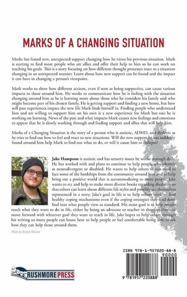 Marks has found new, unexpected support changing how he views his previous situation. Mark is starting to find more people who are allies and offer their help to him so he can work on reaching his goals. This is a story focusing on how different thought processes react to a situation changing in an unexpected manner. Learn about how new support can be found and the impact it can have in changing a person's viewpoint. Mark works to show how different actions, even if seen as being supportive, can cause various impacts to those around him. He works to communicate how he is feeling with the situation changing around him as he is learning more about those who he considers his family and who might become part of his chosen family. He is getting support and finding a new home, but how will past experiences impact the new life Mark finds himself in. Finding people who understand him and are willing to support him on his own is a new experience for Mark but one he is working on learning. News of the past and what impacts Mark causes new feelings and emotions to appear that he is slowly working through and finding support and allies that will help him. Marks of a Changing Situation is the story of a person who is autistic, ADHD, and dyslexic as he tries to find out how to feel and react to new situations. Will the new support he has suddenly found around him help Mark to find out what to do, or will it cause him to collapse?