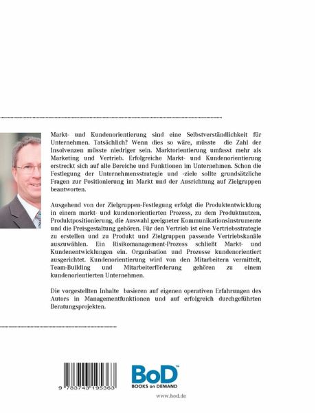 Markt- und Kundenorientierung sind eine Selbstverständlichkeit für im Wettbewerb stehende Unternehmen. Tatsächlich? Wenn dies so wäre, müsste es viel weniger erfolglose Produkte geben und auch die Zahl der Insolvenzen müsste niedriger sein. Marktorientierung umfasst mehr als Marketing und Vertrieb. Erfolgreiche Markt- und Kundenorientierung erstreckt sich auf alle Bereiche und Funktionen im Unternehmen. Schon die Festlegung der Unternehmensstrategie und -ziele sollte grundsätzliche Fragen zur Positionierung im Markt und der Ausrichtung auf Zielgruppen beantworten. Ausgehend von der Zielgruppen-Festlegung erfolgt die Produktentwicklung in einem markt- und kundenorientierten Prozess, zu dem Produktnutzen, Produktpositionierung, die Auswahl geeigneter Kommunikationsinstrumente und die Preisgestaltung gehören. Für den Vertrieb ist eine Vertriebsstrategie zu erstellen und zu Produkt und Zielgruppen passende Vertriebskanäle auszuwählen. Der Online-Vertrieb gehört selbstverständlich auch dazu. Ein effizientes Vertriebscontrolling ist unerlässlich, um die sehr unterschiedlichen Kosten im Griff zu behalten und Vorgaben für eine Vertriebsoptimierung abzuleiten. Ein Risikomanagement-Prozess ist unumgänglich und schließt Markt- und Kundenentwicklungen ein.Im Sinne einer durchgehenden Kundenorientierung werden Organisation und Prozesse kundenorientiert ausgerichtet. Kundenorientierung wird von den Mitarbeitern vermittelt. Da Ziele in der Regel von Mitarbeiter-Teams erreicht werden, gehören Team-Building und Mitarbeiterförderung zu einem kundenorientierten Unternehmen.Die vorgestellten Inhalte zur Markt- und Kundenorientierung im Unternehmen basieren auf eigenen operativen Erfahrungen des Autors in Managementfunktionen und auf erfolgreich durchgeführten Beratungsprojekten. Teile der Inhalte wurden bereits in einzelnen Fachartikeln veröffentlicht und für Vorträge genutzt.