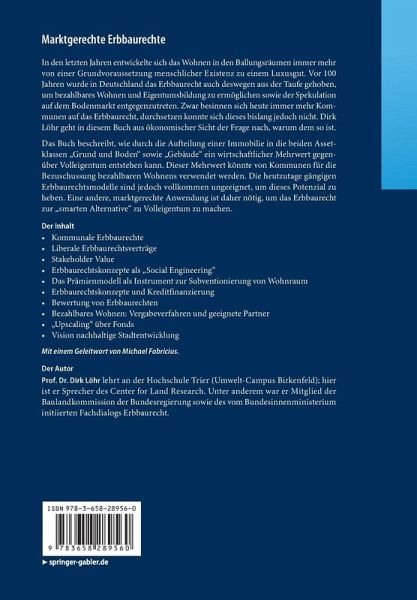In den letzten Jahren entwickelte sich das Wohnen in den Ballungsräumen immer mehr von einer Grundvoraussetzung menschlicher Existenz zu einem Luxusgut. Vor 100 Jahren wurde in Deutschland das Erbbaurecht auch deswegen aus der Taufe gehoben, um bezahlbares Wohnen und Eigentumsbildung zu ermöglichen sowie der Spekulation auf dem Bodenmarkt entgegenzutreten. Zwar besinnen sich heute immer mehr Kommunen auf das Erbbaurecht, durchsetzen konnte sich dieses bislang jedoch nicht. Dirk Löhr geht in diesem Buch aus ökonomischer Sicht der Frage nach, warum dem so ist.