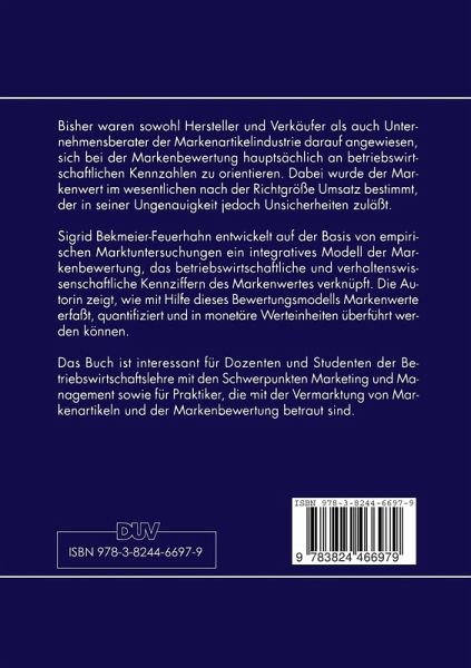 Bisher waren sowohl Hersteller und Verkäufer als auch Unternehmensberater der Markenartikelindustrie darauf angewiesen, sich bei der Markenbewertung hauptsächlich an betriebswirtschaftlichen Kennzahlen zu orientieren. Dabei wurde der Markenwert im wesentlichen nach der Richtgröße Umsatz bestimmt, der in seiner Ungenauigkeit jedoch Unsicherheiten zuläßt. Sigrid Bekmeier-Feuerhahn entwickelt auf der Basis von empirischen Marktuntersuchungen ein integratives Modell der Markenbewertung, das betriebswirtschaftliche und verhaltenswissenschaftliche Kennziffern des Markenwertes verknüpft. Die Autorin zeigt, wie mit Hilfe dieses Bewertungsmodells Markenwerte erfaßt, quantifiziert und in monetäre Werteinheiten überführt werden können.