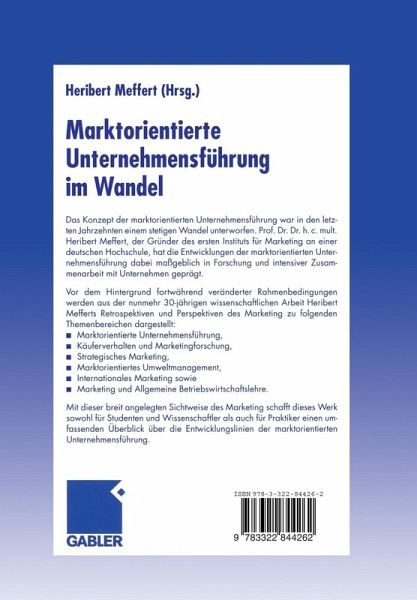 Das Konzept der marktorientierten Unternehmensführung war in den letzten Jahrzehnten einem stetigen Wandel unterworfen. Prof. Dr. Dr. h.c. mult. Heribert Meffert, der Gründer des ersten Instituts für Marketing an einer deutschen Hochschule, hat die Entwicklungen der marktorientierten Unternehmensführung dabei maßgeblich in Forschung und intensiver Zusammenarbeit mit Unternehmen geprägt.