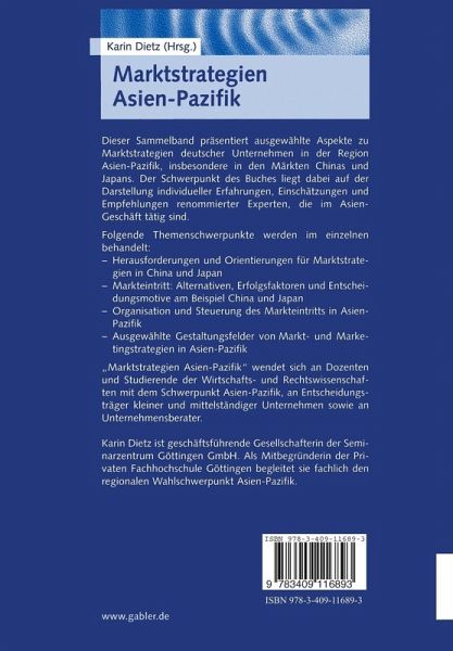 Dieser Sammelband präsentiert ausgewählte Aspekte zu Marktstrategien deutscher Unternehmen in der Region Asien-Pazifik, insbesondere in den Märkten Chinas und Japans. Der Schwerpunkt des Buches liegt dabei auf der Darstellung individueller Erfahrungen, Einschätzungen und Empfehlungen renommierter Experten, die im Asien-Geschäft tätig sind.