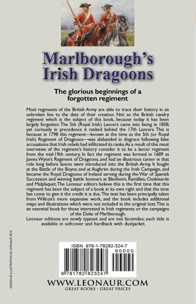 The glorious beginnings of a forgotten regiment Most regiments of the British Army are able to trace their history in an unbroken line to the date of their creation. Not so the British cavalry regiment which is the subject of this book, because today it has been largely forgotten. The 5th (Royal Irish) Lancers came into being in 1858, yet curiously in precedence it ranked behind the 17th Lancers. This is because in 1798 this regiment-known at the time as the 5th (or Royal Irish) Regiment of Dragoons-was disbanded in disgrace following false accusations that Irish rebels had infiltrated its ranks. As a result of this most overviews of the regiment's history consider it to be a lancer regiment from the mid-19th century. In fact the regiment was formed in 1689 as James Wynn's Regiment of Dragoons, and had an illustrious career in that role long before lances were introduced into the British Army. It fought at the Battle of the Boyne and at Aughrim during the Irish Campaign, and became the Royal Dragoons of Ireland serving during the War of Spanish Succession and winning battle honours at Blenheim, Ramillies, Oudenarde and Malplaquet. The Leonaur editors believe this is the first time that this regiment has been the subject of a book in its own right and that the time has come to give it the credit it is due. The text has been principally taken from Willcox's more expansive work, and the book includes additional maps and illustrations which were not included in the original text. This is an essential book for those interested in Irish regiments or the campaigns of the Duke of Marlborough. Leonaur editions are newly typeset and are not facsimiles; each title is available in softcover and hardback with dustjacket.