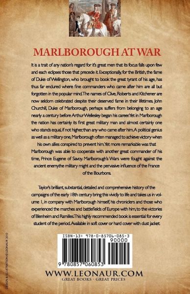 Marlborough at War It is a trait of any nation's regard for it's great men that its focus falls upon few and each eclipses those that precede it. Exceptionally, for the British, the fame of Duke of Wellington, who brought to book the great tyrant of his age, has thus far endured where fine commanders who came after him are all but forgotten in the popular mind. The names of Clive, Roberts and Kitchener are now seldom celebrated despite their deserved fame in their lifetimes. John Churchill, Duke of Marlborough, perhaps suffers from belonging to an age nearly a century before Arthur Wellesley began his career. Yet in Marlborough the nation has certainly its first great military man and almost certainly one who stands equal, if not higher, than any who came after him. A political genius as well as a military one, Marlborough often managed to achieve victory when his own allies conspired to prevent him. Yet more remarkable was that Marlborough was able to cooperate with another great commander of his time, Prince Eugene of Savoy. Marlborough's Wars were fought against the ancient enemy-the military might and the pervasive influence of the France of the Bourbons. Taylor's brilliant, substantial, detailed and comprehensive history of the campaigns of the early 18th century bring this vividly to life and takes us in volume 1, in company with Marlborough himself, his chroniclers and those who experienced the marches and battlefields of Europe with him, to the victories of Blenheim and Ramilles. This highly recommended book is essential for every student of the period. Available in soft cover or hard cover with dust jacket.