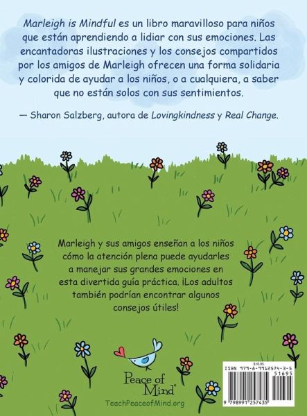 Marleigh practica la conciencia plena Una guía hecha con y para niños para manejar y ser consciente de las emociones Escrito e ilustrado por Linda Ryden Traducido por José Benítez Díaz Marleigh practica la conciencia plena es una guía divertida para los niños sobre cómo usar la conciencia plena para manejar grandes emociones. A través de viñetas cotidianas con las que todos los niños se identificarán, personajes afines comparten las prácticas de atención plena que les ayudan cuando se sienten preocupados, enojados, distraídos, tristes, muy emocionados, solos, felices y preocupados por el mundo que los rodea. Con ilustraciones cálidas y atractivas y una orientación práctica, este libro es imprescindible para ayudar a los niños a enfrentar los desafíos de la vida, desde desacuerdos con un hermano hasta la preocupación por el bienestar de un desconocido. ¡Un regalo maravilloso y un recurso excelente para cada estantería!