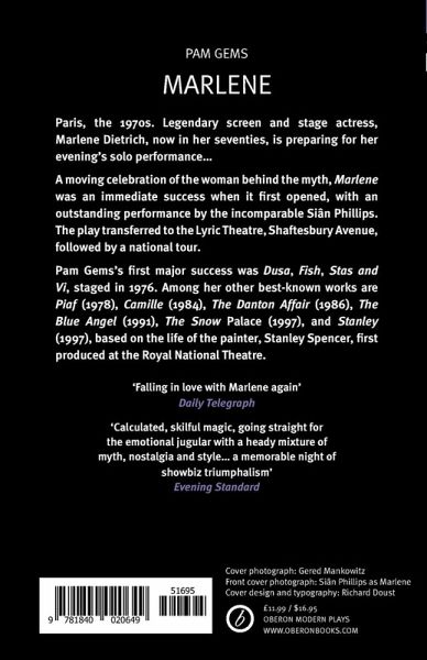 This West End and Broadway hit is set in Paris in the 1970s. Legendary screen and stage actress, Marlene Dietrich, now in her seventies, prepares for her evening performance.
