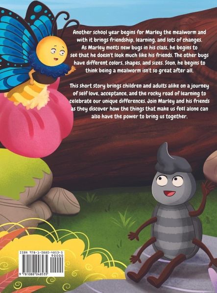 Another school year begins for Marley the mealworm and with it brings friendship, learning, and lots of changes. As Marley meets new bugs in his class, he begins to see that he doesn't look much like his friends. The other bugs have different colors, shapes, and sizes. Soon, he begins to think being a mealworm isn't so great after all. This short store brings children and adults alike on a journey of self love, acceptance, and the rocky road of learning to celebrate our unique differences. Join Marley and his friends as they discover how the things that make us feel alone can also have the power to bring us together.