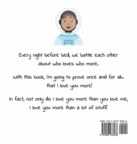 Every night before bed, a father and his son argue about who loves whom more. That father decided to make this book to prove once and for all, that he loves his kid more than his kid loves him, by pointing out some of the things that he loves his son more than.