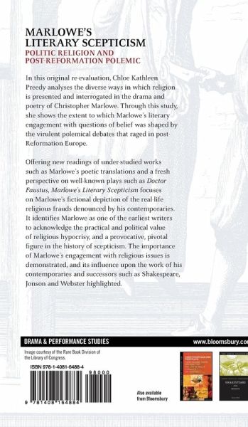 Winner of the Roma Gill Prize 2015, Marlowe's Literary Scepticism re-evaluates the representation of religion in Christopher Marlowe's plays and poems, demonstrating the extent to which his literary engagement with questions of belief was shaped by the virulent polemical debates that raged in post-Reformation Europe. Offering new readings of under-studied works such as the poetic translations and a fresh perspective on well-known plays such as Doctor Faustus, this book focuses on Marlowe's depiction of the religious frauds denounced by his contemporaries. It identifies Marlowe as one of the earliest writers to acknowledge the practical value of religious hypocrisy, and a pivotal figure in the history of scepticism.