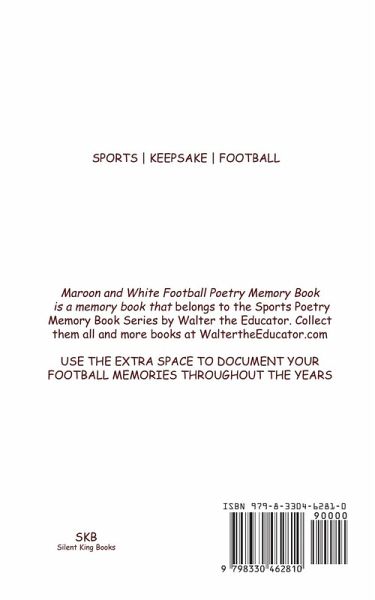 Maroon and White Football Poetry Memory Book is a memory book that belongs to the Sports Poetry Memory Book Series by Walter the Educator. Collect them all and more books at WaltertheEducator.com. USE THE EXTRA SPACE TO DOCUMENT YOUR FOOTBALL MEMORIES THROUGHOUT THE YEARS