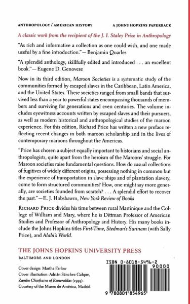 Now in its twenty-fifth anniversary edition, Maroon Societies is a systematic study of the communities formed by escaped slaves in the Caribbean, Latin America, and the United States. The volume includes eyewitness accounts written by escaped slaves and their pursuers, as well as modern historical and anthropological studies of the maroon experience. Now in its twenty-fifth anniversary edition, Maroon Societies is a systematic study of the communities formed by escaped slaves in the Caribbean, Latin America, and the United States. These societies ranged from small bands that survived less than a year to powerful states encompassing thousands of members and surviving for generations and even centuries. The volume includes eyewitness accounts written by escaped slaves and their pursuers, as well as modern historical and anthropological studies of the maroon experience. From the recipient of the J. I. Staley Prize in Anthropology