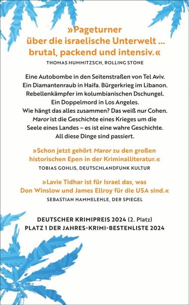 »Der aus einem Kibbuz stammende Lavie Tidhar erzählt in seinem fulminanten Thriller Maror, wie Israel durch Krieg und Verbrechen mächtig geworden ist. Ein großer Roman in einer heiklen Zeit, der voller Gewalt und Zorn steckt.« Sonja Hartl SWR 20240731