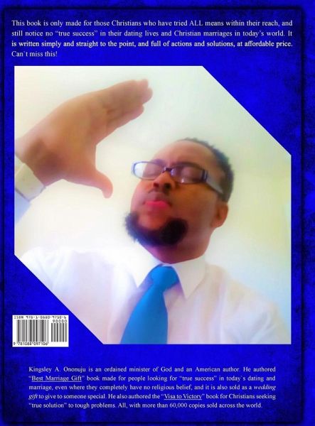 This book is a MUST READ book if you have tried all means in today's world and still can't find or keep a spouse for a Christian marriage that gets no divorce".