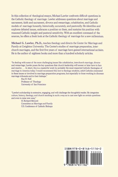 In this collection of theological essays, Michael Lawler confronts difficult questions in the Catholic theology of marriage. Lawler addresses questions about marriage and sacrament, faith and sacrament, divorce and remarriage, cohabitation, an Catholic models of marriage honestly, historically, accurately, and pastorally. He identifies and explores debated issues, embraces a position on them, and sustains his position with reasoned Catholic insight and pastoral sensitivity. With an excellent command of the sources, he offers a fresh look at the Catholic theology of marriage for a new millennium.