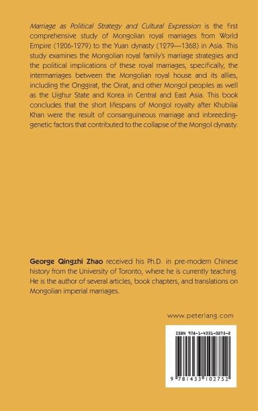 Marriage as Political Strategy and Cultural Expression is the first comprehensive study of Mongolian royal marriages from World Empire (1206-1279) to the Yuan dynasty (1279-1368) in Asia. This study examines the Mongolian royal family's marriage strategies and the political implications of these royal marriages, specifically, the intermarriages between the Mongolian royal house and its allies, including the Onggirat, the Oirat, and other Mongol peoples as well as the Uighur State and Korea in Central and East Asia. This book concludes that the short lifespans of Mongol royalty after Khubilai Khan were the result of consanguineous marriage and inbreeding - genetic factors that contributed to the collapse of the Mongol dynasty.