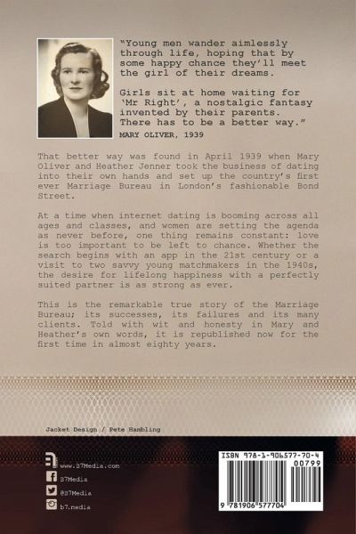 At a time when internet dating is booming across all ages and classes and women are setting the agenda as never before, some things have not changed: You can't always leave love to chance. And whether the search begins with an app in the 21st century or a visit to two young but savvy matchmakers in the 1940s, the desire for lifelong happiness with a perfectly suited partner remains the same. This is the remarkable true story of the Marriage Bureau; its successes, its rare failures and its many clients, told with wit and honesty in Mary and Heather's own words.