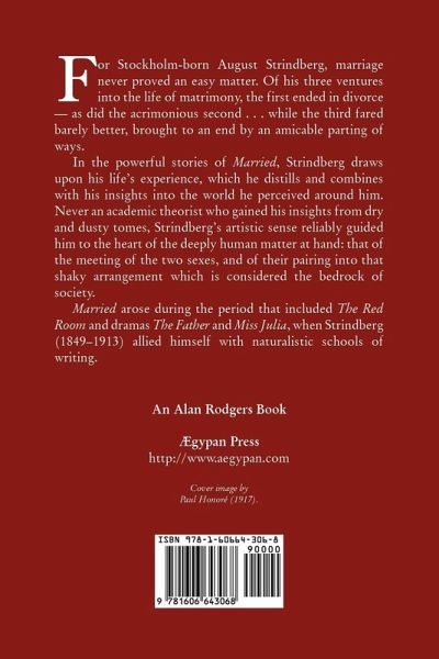 For Stockholm-born August Strindberg, marriage never proved an easy matter. Of his three ventures into the life of matrimony, the first ended in divorce -- as did the acrimonious second . . . while the third fared barely better, brought to an end by an amicable parting of ways. In the powerful stories of Married, Strindberg draws upon his life's experience, which he distills and combines with his insights into the world he perceived around him. Never an academic theorist who gained his insights from dry and dusty tomes, Strindberg's artistic sense reliably guided him to the heart of the deeply human matter at hand: that of the meeting of the two sexes, and of their pairing into that shaky arrangement which is considered the bedrock of society.