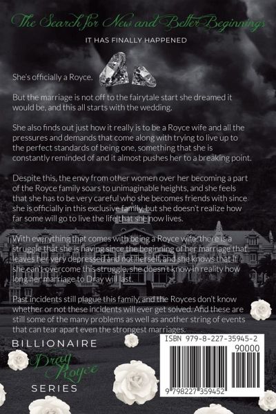 She's officially a Royce. But the marriage is not off to the fairytale start she dreamed it would be, and this all starts with the wedding. She also finds out just how it really is to be a Royce wife and all the pressures and demands that come along with trying to live up to the perfect standards of being one, something that she is constantly reminded of and it almost pushes her to a breaking point. Despite this, the envy from other women over her becoming a part of the Royce family soars to unimaginable heights, and she feels that she has to be very careful who she becomes friends with since she is officially in this exclusive family, but she doesn't realize how far some will go to live the life that she now lives. With everything that comes with being a Royce wife, there is a struggle that she is having since the beginning of her marriage that leaves her very depressed and not herself, and she knows that if she can't overcome this struggle, she doesn't know in reality how long her marriage to Dray will last. Past incidents still plague this family, and the Royces don't know whether or not these incidents will ever get solved. And these are still some of the many problems as well as another string of events that can tear apart even the strongest marriages. Married to Dray is the fourth book in the Billionaire Dray Royce series.