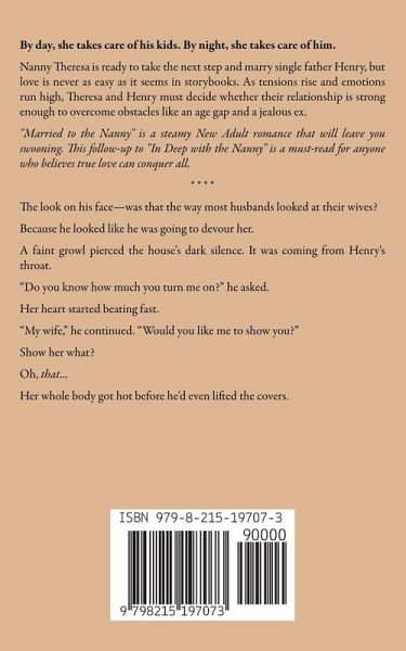 By day, she takes care of his kids. By night, she takes care of him. Nanny Theresa is ready to take the next step and marry single father Henry, but love is never as easy as it seems in storybooks. As tensions rise and emotions run high, Theresa and Henry must decide whether their relationship is strong enough to overcome obstacles like an age gap and a jealous ex. "Married to the Nanny" is a steamy New Adult romance that will leave you swooning. This follow-up to "In Deep with the Nanny" is a must-read for anyone who believes true love can conquer all.