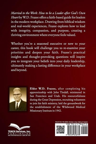 Elder W.D. Frazee preached on many topics, placing careful importance on leadership. He lived through significant Adventist history in which the transition of foremost leaders brought serious challenges. Having witnessed these challenges firsthand, he made it a point to train new leaders rather than try to do all the work himself. Married to the Work is a book on leadership-a compilation of some of Frazee's most relevant and practical sermons and teachings on the subject. Many prominent leaders in our church today have received encouragement, counsel, and admonition through these timeless messages. Whether you are currently involved in leadership or feel that God is calling you, in this book your soul will find guidance to make you a leader after God's own heart.