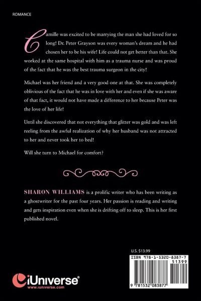 Camille was excited to be marrying the man she had loved for so long! Dr. Peter Grayson was every woman's dream and he had chosen her to be his wife! Life could not get better than that. She worked at the same hospital with him as a trauma nurse and was proud of the fact that he was the best trauma surgeon in the city! Michael was her friend and a very good one at that. She was completely oblivious of the fact that he was in love with her and even if she was aware of that fact, it would not have made a difference to her because Peter was the love of her life! Until she discovered that not everything that glitter was gold and was left reeling from the awful realization of why her husband was not attracted to her and never took her to bed! Will she turn to Michael for comfort?