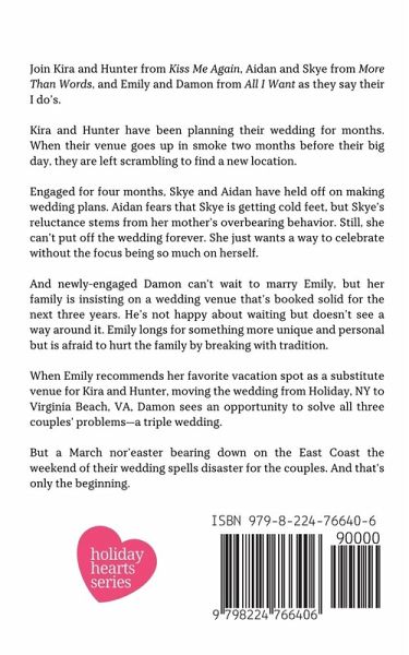 Join Kira and Hunter from Kiss Me Again, Aidan and Skye from More Than Words, and Emily and Damon from All I Want as they share a triple wedding in Marry Me. Kira and Hunter have been planning their wedding for months. When their venue goes up in smoke two months before their big day, they are left scrambling to find a new location. ¿ Engaged for four months, Skye and Aidan have held off on making wedding plans. Aidan fears that Skye is getting cold feet, but Skye's reluctance stems from her mother's overbearing behavior. Still, she can't put off the wedding forever. She just wants a way to celebrate without the focus being so much on herself.¿ And newly-engaged Damon can't wait to marry Emily, but her family is insisting on a wedding venue that's booked solid for the next three years. He's not happy about waiting but doesn't see a way around it. Emily longs for something more unique and personal but is afraid to hurt the family by breaking with tradition.¿ When Emily recommends her favorite vacation spot as a substitute venue for Kira and Hunter, moving the wedding from Holiday, NY to Virginia Beach, VA, Damon sees an opportunity to solve all three couples' problems-a triple wedding. ¿ But a March nor'easter bearing down on the East Coast the weekend of their wedding spells disaster for the couples. And that's only the beginning.