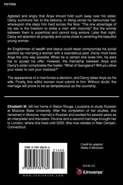 Agitated and angry that Anya should hold such sway over his sister, Darcy summons her to the balcony. In biting words he denounces her, whereupon she slaps him hard across the face. 'The one advantage of my sex is the freedom to strike a man with impunity." But the enmity between them is superficial and cannot long endure. Later that night, Darcy will abandon all propriety and come close to ravishing the beautiful young woman. An Englishman of wealth and status could never compromise his social position by marrying a woman with a scandalous past. Darcy must have Anya the only way possible. When he is certain she loves him, he asks her to accept his offer. However, the friendship between Anya and Darcy's sister complicates the matter. 'What of Georgiana? Will you allow your sister to visit your mistress?" The appearance of a rival forces a decision, and Darcy takes Anya as his wife. Finally, this willful woman must submit to him. Without doubt, the marriage will prove to be as tempestuous as the courtship.