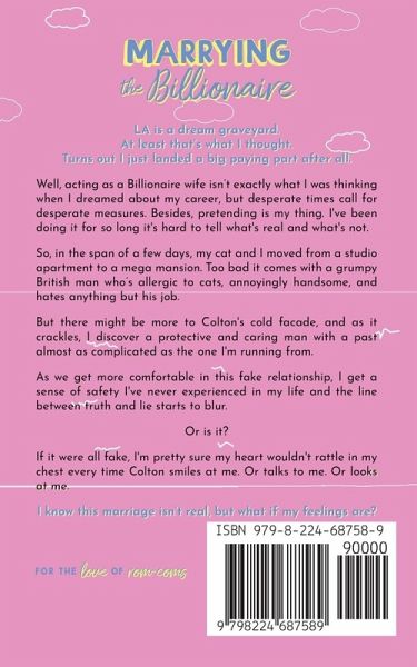 LA is a dream graveyard. At least that's what I thought. Turns out I just landed a big paying part after all. Well, acting as a Billionaire wife isn't exactly what I was thinking when I dreamed about my career, but desperate times call for desperate measures. Besides, pretending is my thing. I've been doing it for so long it's hard to tell what's real and what's not. So, in the span of a few days, my cat and I moved from a studio apartment to a mega mansion. Too bad it comes with a grumpy British man who's allergic to cats, annoyingly handsome, and hates anything but his job. But there might be more to Colton's cold facade, and as it crackles, I discover a protective and caring man with a past almost as complicated as the one I'm running from. As we get more comfortable in this fake relationship, I get a sense of safety I've never experienced in my life and the line between truth and lie starts to blur. Or is it? If it were all fake, I'm pretty sure my heart wouldn't rattle in my chest every time Colton smiles at me. Or talks to me. Or looks at me. I know this marriage isn't real, but what if my feelings are? Perfect for fans of: ¿¿marriage of convenience ¿¿grumpy vs sunshine ¿¿billionaire heroes ¿¿forced proximity ¿¿cute cat characters ¿¿funny banter ¿¿deep emotional wounds ¿¿closed door/fade to black