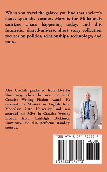 When you travel the galaxy, you find that society's issues span the cosmos. Mars is for Millennials satirizes what's happening today, and this futuristic, shared-universe short story collection focuses on politics, relationships, technology, and more.