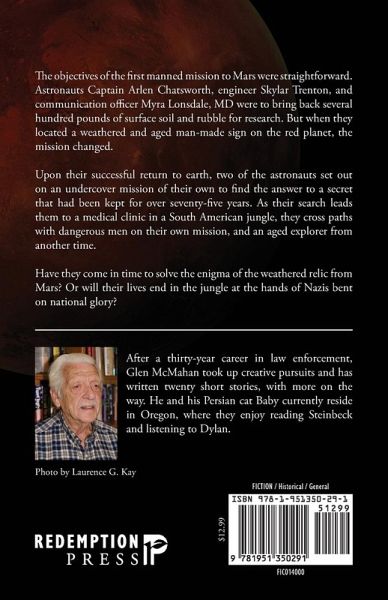 The objectives of the first manned mission to Mars were straightforward. Astronauts Captain Arlen Chatsworth, engineer Skylar Trenton, and communication officer Myra Lonsdale, MD were to bring back several hundred pounds of surface soil and rubble for research. But when they located a weathered and aged man-made sign on the red planet, the mission changed. Upon their successful return to earth, two of the astronauts set out on an undercover mission of their own to find the answer to a secret that had been kept for over seventy-five years. As their search leads them to a medical clinic in a South American jungle, they cross paths with dangerous men on their own mission, and an aged explorer from another time. Have they come in time to solve the enigma of the weathered relic from Mars? Or will their lives end in the jungle at the hands of Nazis bent on national glory?
