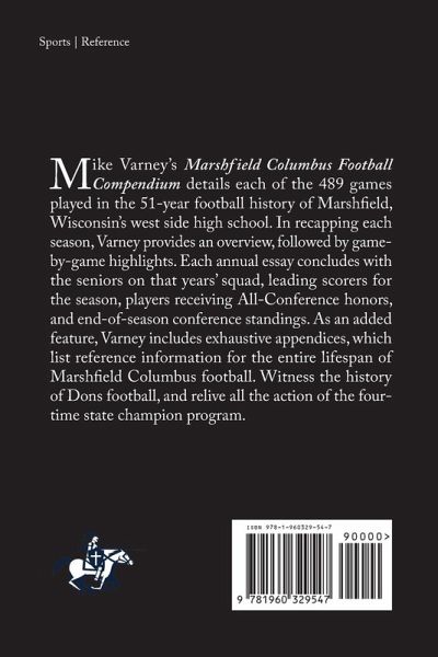 Mike Varney's Marshfield Columbus Football Compendium details each of the 489 games played in the 51-year football history of Marshfield, Wisconsins's west side high school. In recapping each season, Varney provides an overview, followed by game-by-game highlights. Each annual essay concludes with the seniors on that years' squad, leading scorers for the season, players receiving All-Conference honors, and end-of-season conference standings. As an added feature, Varney includes exhaustive appendices, which list reference information for the entire lifespan of Marshfield Columbus football. Witness the history of Dons football, and relive all the action of the four-time state champion program.