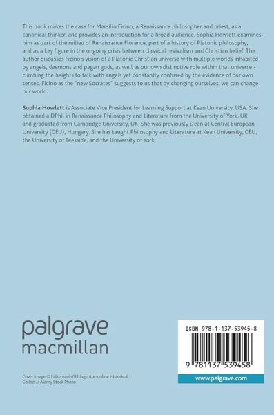 This book makes the case for Marsilio Ficino, a Renaissance philosopher and priest, as a canonical thinker, and provides an introduction for a broad audience. Sophia Howlett examines him as part of the milieu of Renaissance Florence, part of a history of Platonic philosophy, and as a key figure in the ongoing crisis between classical revivalism and Christian belief. The author discusses Ficino's vision of a Platonic Christian universe with multiple worlds inhabited by angels, daemons and pagan gods, as well as our own distinctive role within that universe - climbing the heights to talk with angels yet constantly confused by the evidence of our own senses. Ficino as the "new Socrates" suggests to us that by changing ourselves, we can change our world.