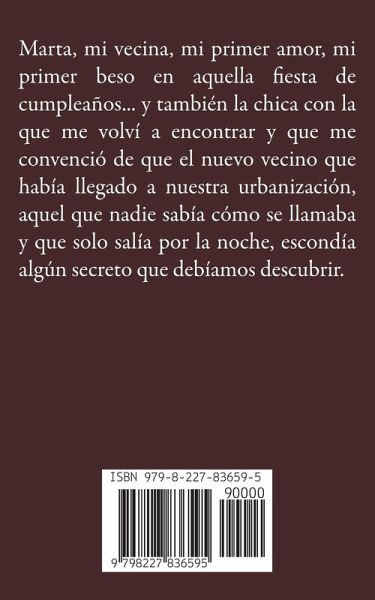 Marta, mi vecina, mi primer amor, mi primer beso en aquella fiesta de cumpleaños... y también la chica con la que me volví a encontrar y que me convenció de que el nuevo vecino que había llegado a nuestra urbanización, aquel que nadie sabía cómo se llamaba y que solo salía por la noche, escondía algún secreto que debíamos descubrir.
